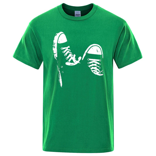 100% coton, décontracté, à manches courtes, imprimé chaussures de skate, t-shirt été respirant