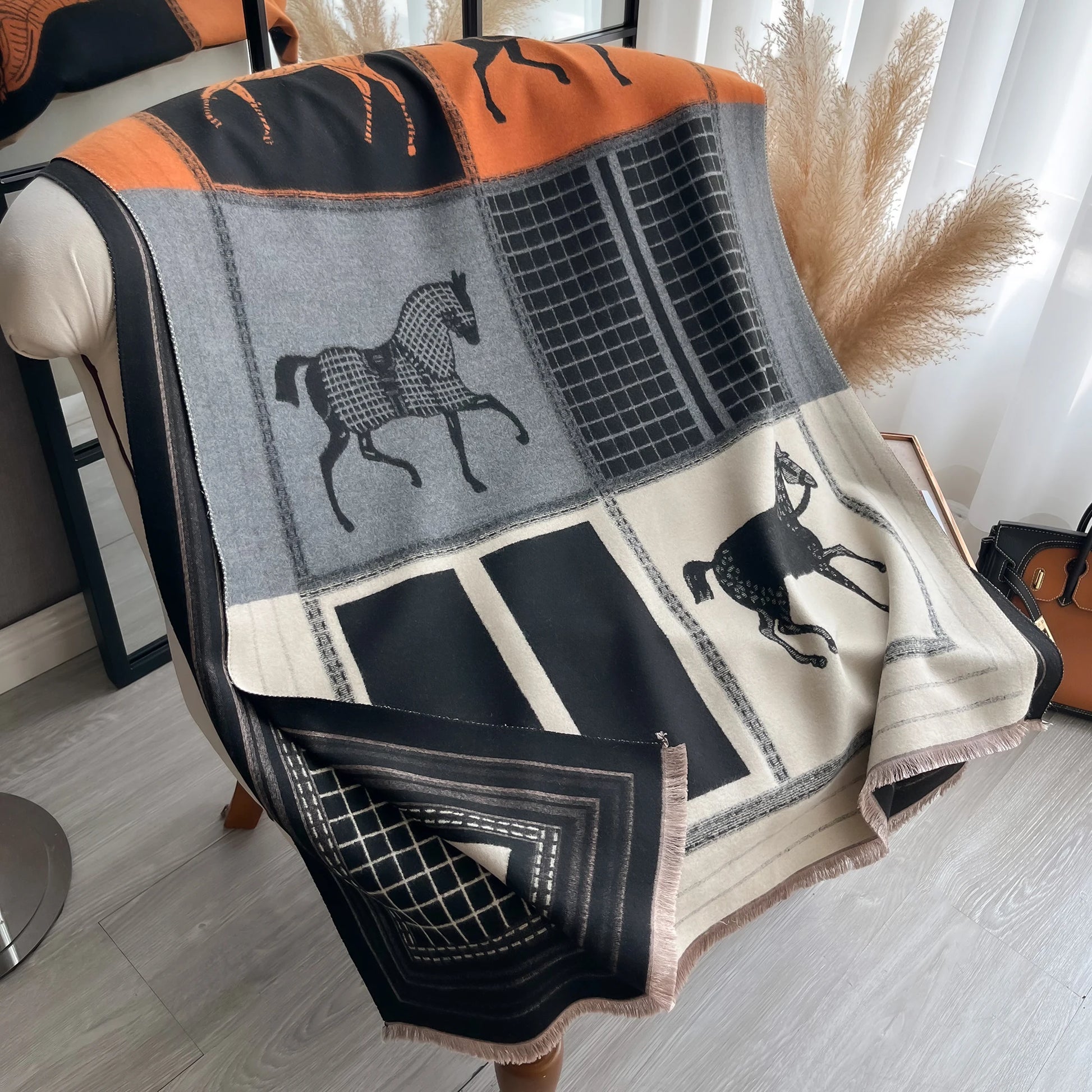 AF-Écharpe en cachemire, de luxe, pour femme, imprimé cheval, chaude couverture pashmina, poncho, fo